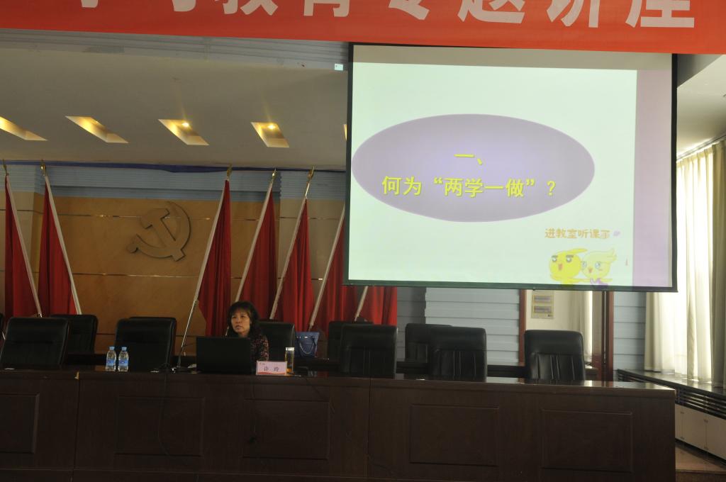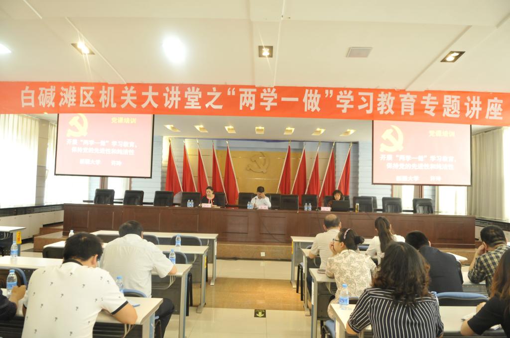 为了贯彻落实中央、自治区、克拉玛依市委及白碱滩区委关于开展“两学一做”学习教育的有关要求,增强党员干部“政治意识、大局意识、核心意识、看齐意识”,推动全面从严治党向基层延伸,进一步解决党员队伍在思想、组织、作风、纪律等方面存在的问题,保持发展党的先进性和纯洁性。5月26日下午,白碱滩区直机关党工委举办了机关大讲堂之“两学一做”学习教育专题讲座。本次讲座由新疆大学马克思主义教学室副教授许玲应邀主讲,区委常委、组织部长朱洪及区直属机关各基层党组织的130余名党员参加了专题讲座。