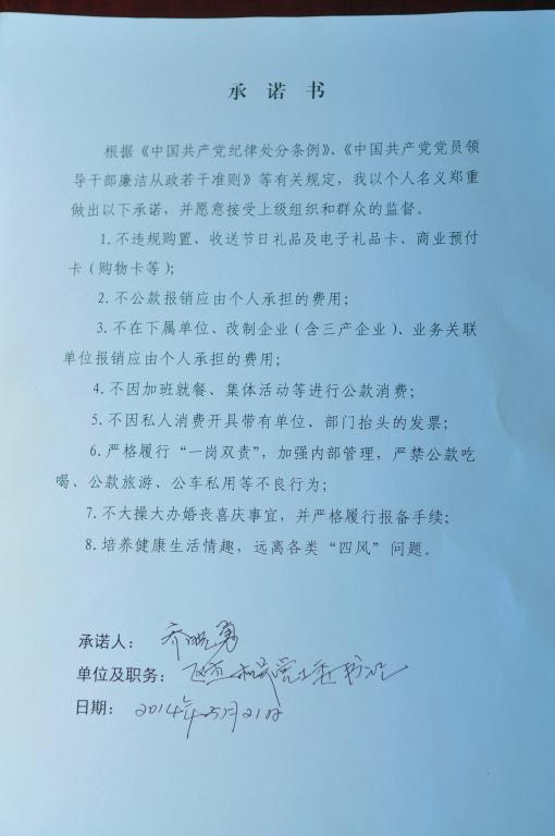 廉政承诺书 乔晓勇
