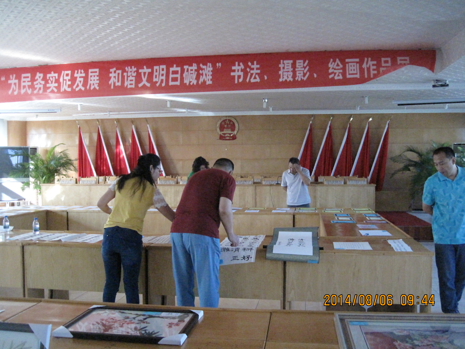 (通讯员:冉 峰 李春霞报道)为更好的推动白碱滩区直机关党的群众路线教育实践活动开展,进一步加强机关文化建设,丰富机关人员文化生活,展示机关人员的文化素养,8月6日,白碱滩区直机关党工委举办“为民务实促发展 和谐文明白碱滩”为主题的书法、摄影、绘画作品展。作品展评期间,吸引300余名机关各部门工作人员陆续到现场进行参观。