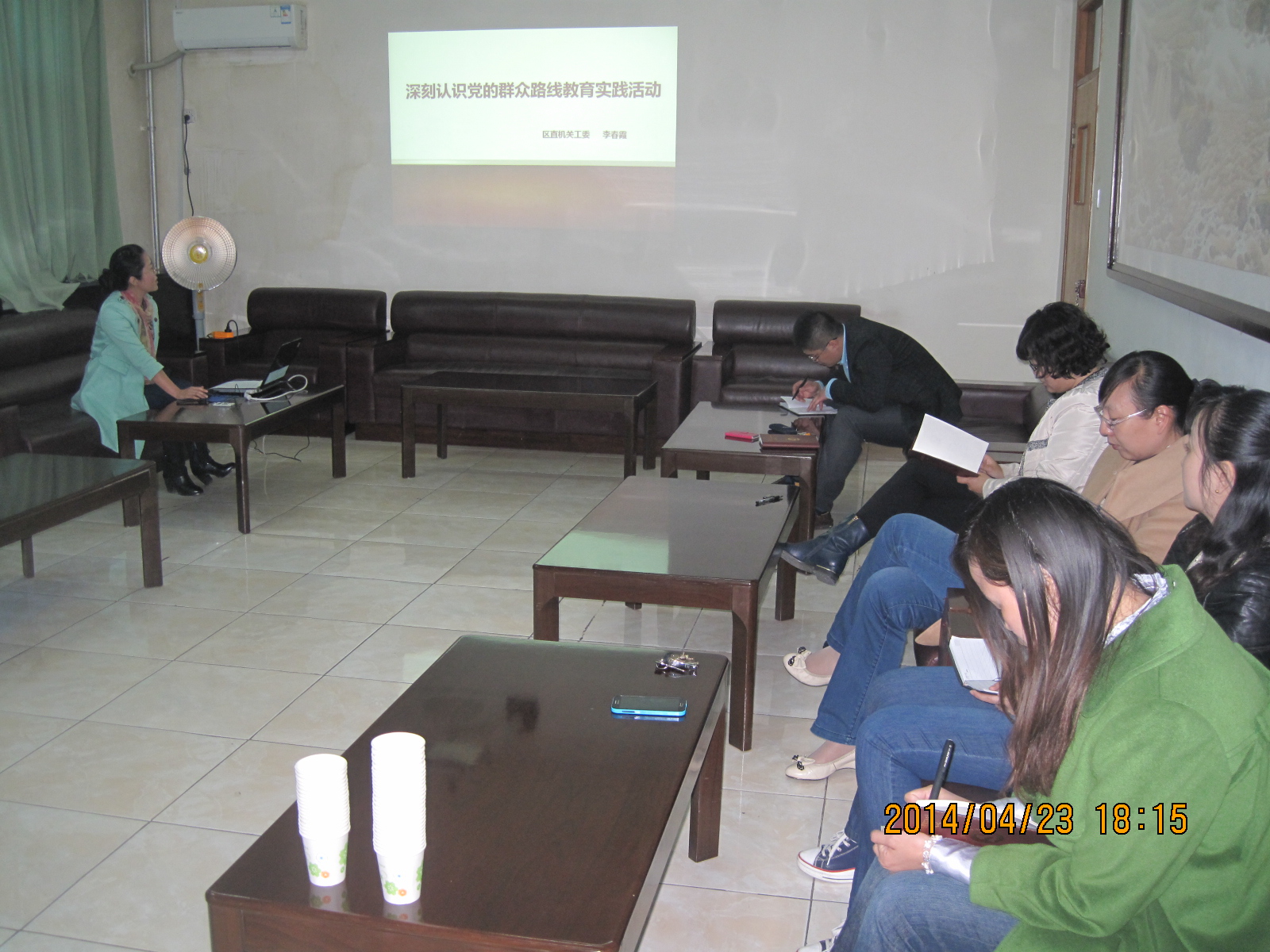 (通讯员:毕娟)2014年4月23日组织部机关党工委联合支部开展“深刻认识党的群众路线教育实践活动”党课学习。本次专题学习活动由支部宣传委员李春霞同志主讲。